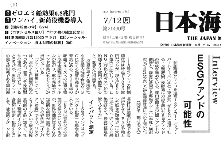 海事プレスに当社記事が掲載されました。[安定運営のファンドとして飛躍を]